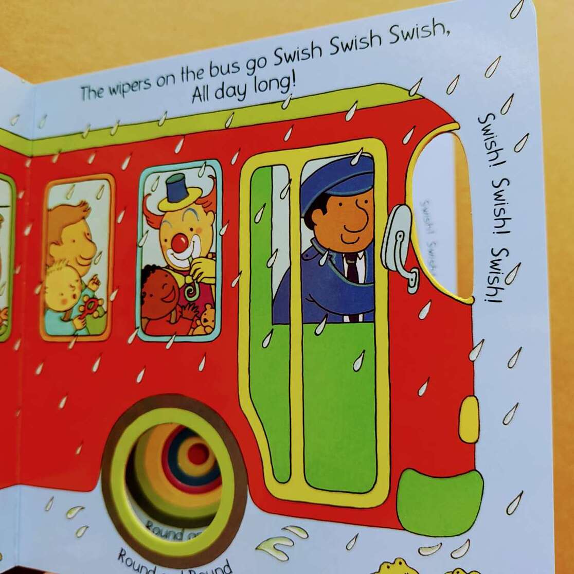 The wheel on the bus ポップでカラフルな定番バスの絵本 穴あきの仕掛け付き