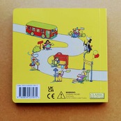 街中を走るバスを題材として、ワイパーの音やドアの閉まる音の描写など、シンプルで子供にも口ずさみやすいお歌の本です。歌詞には様々なバージョンがあります。